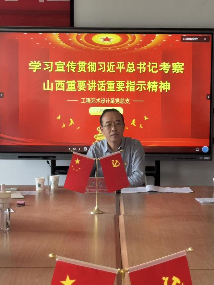 为深入学习近平总书记考察山西重要讲话重要指示精神,工程艺术设计系党总支于9月24日组织了一场意义非凡的党日活动。此次活动以集体学习和自我总结剖析为主要方式,又特别邀请到了学院党委书记乔忠华同志来系里做了本次学习的专题宣讲,旨在强化党员教师的思想建设和作风建设,让总书记讲话指示的精神成为推动工艺系及全院发展的宏大力量。