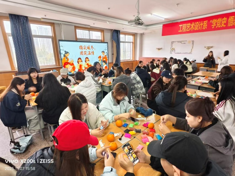 2025年11月7日由山西财贸职业技术学院工程艺术设计系实践服务部开展的“指尖暖冬,团筑温情”学生会团建活动在敦行楼“教工之家”进行。活动现场暖意融融。此次活动将传统节气文化与创意手工结合,既让同学们体验了动手创作的乐趣,也在协作中增进了交流。