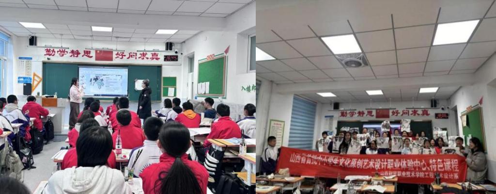 2025年12月3日,山西财贸职业技术学院工程艺术设计系依托山西省首批中小学生文化原创艺术设计职业体验中心、特色课程走进太原市平民中学,以“传承中华文脉,培育创新基因”为核心,创新开发“艺术实践、非遗技艺传承、数字创意设计”职业体验课程。