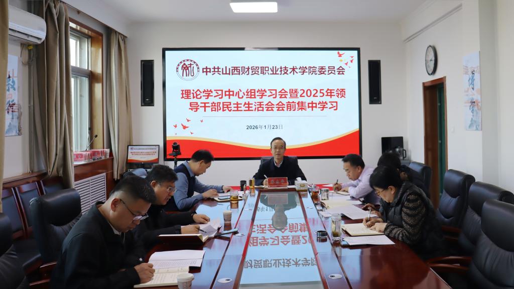 1月23日下午,学院在勤政楼四层会议室召开2026年第二次党委理论学习中心组学习会暨2025年民主生活会会前专题学习会,与会人员...