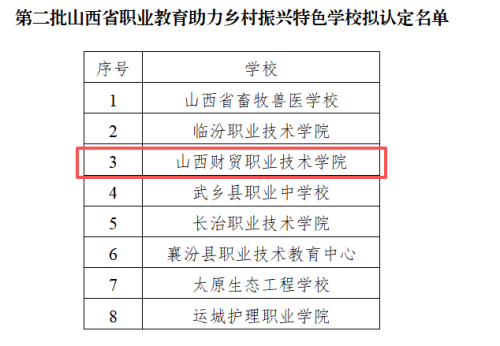 2025年11月14日,山西省教育厅公示第二批山西省职业教育助力乡村振兴特色学校拟认定名单,山西财贸职业技术学院凭借在乡村振兴领域的扎实工作与突出成效成功入选,标志着学院服务乡村振兴战略的办学实践获得认可。