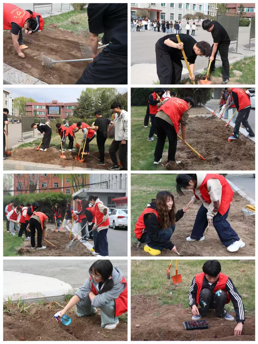 线下,院团委组织开展了“守护绿色家园,共建生态校园”实践活动。青年学子化身校园环保卫士,分组对学校绿化带、教学楼周边、校园角落等重点区域开展全方位清洁:细致捡拾白色垃圾、清理枯枝落叶,用双手还原校园的洁净与美观。在种植活动中,同学们体验劳作乐趣,细心铺土、栽种、培土,精心调整每株多肉的位置,为校园增添了一抹鲜活的绿意。此外,院团委还邀请线上活动中积分排名前列的同学参与线下种植,将环保意识转化为守护校园的实际行动。通过系列实践,同学们不仅体验到劳动的快乐,更深刻认识到:美丽中国建设应从爱护一草一木、守护每一片绿色做起。