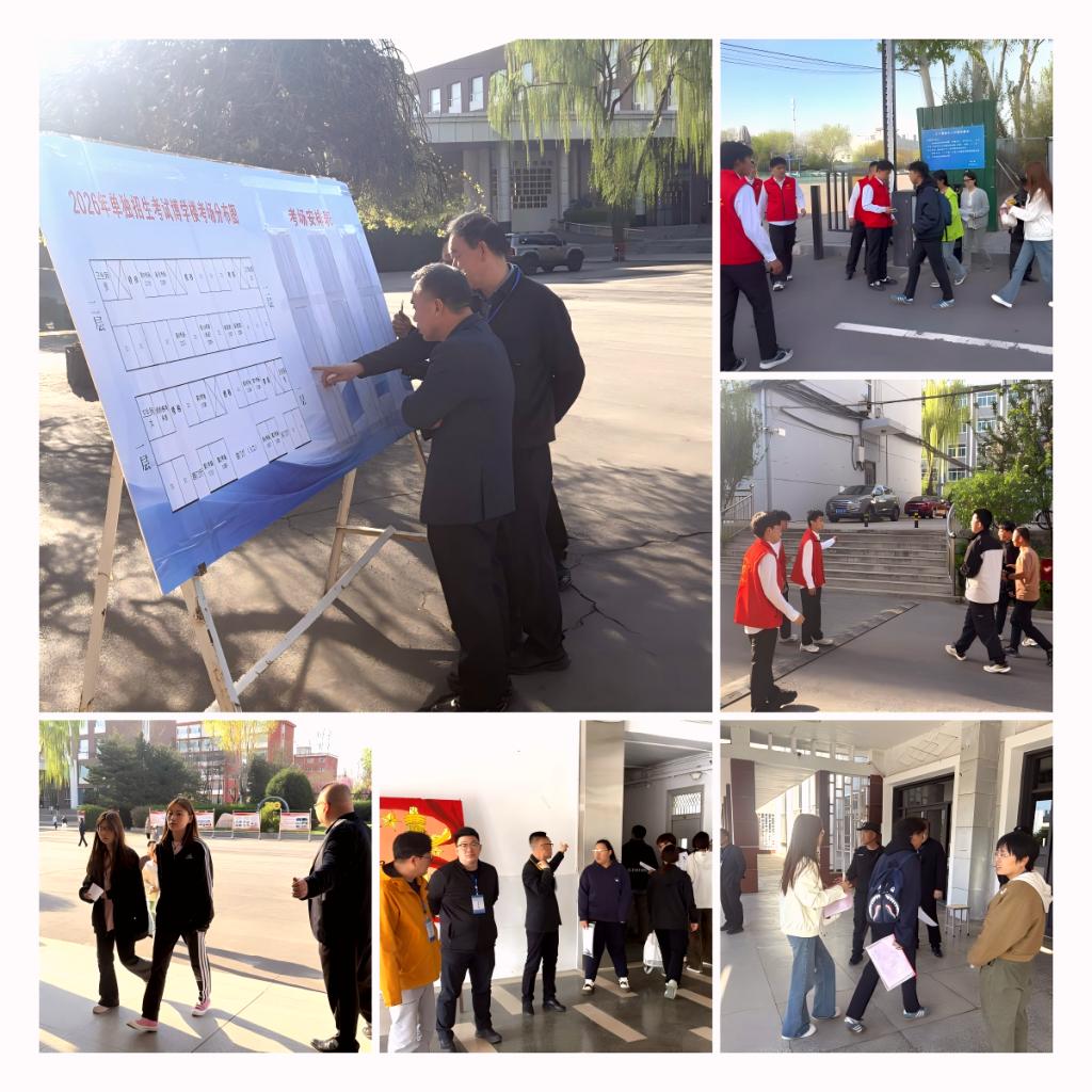 学院在励志楼大报告厅设立家长接待站,提供休息场所与政策咨询服务;在操场规划临时停车区域,优化校园交通流线,方便考生及家长出行。全体工作人员、志愿者提前到岗、精神饱满、服务周到,志愿者主动引导考生入场、维持现场秩序、及时答疑解惑,全程践行“以人为本、公平公正”原则,用细致服务为考生保驾护航。