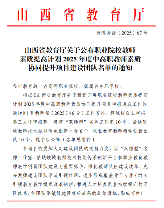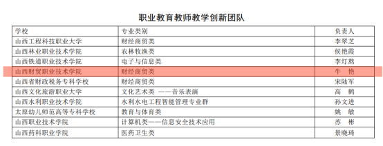 近日,从省教育厅传来喜讯,我院财经商贸专业教学团队经过层层选拔,成功获批“山西省职业教育教师教学创新团队”。这一突破标志着我院在深化教育教学改革、加强师资队伍建设方面取得了重要进展,为学校高质量发展注入了新的动力。