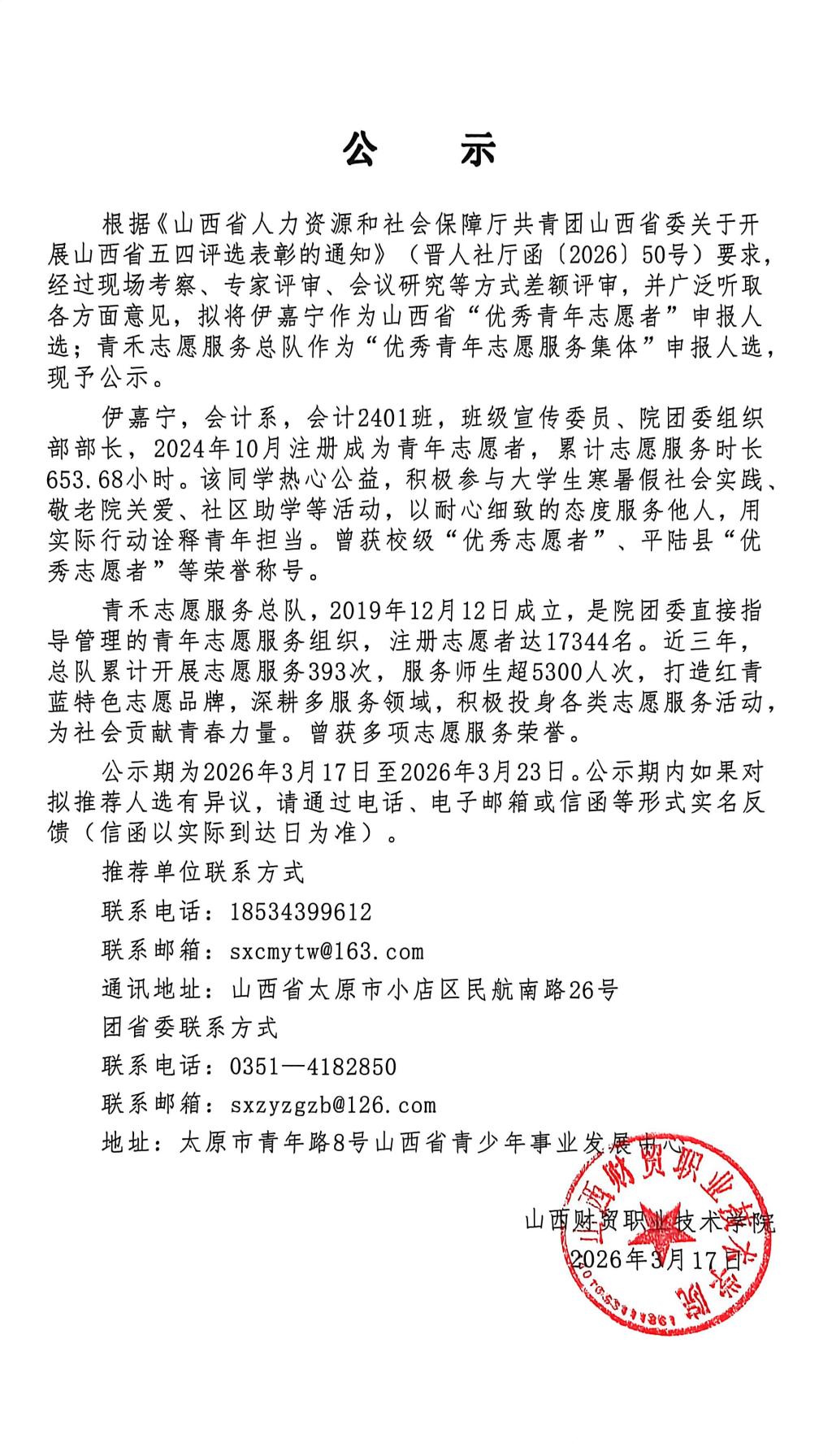 关于推报山西省优秀青年志愿者和优秀青年志愿服务集体的公示