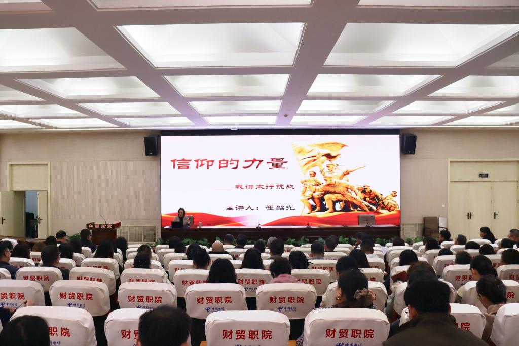为推动党史学习教育常态化长效化,深入传承红色基因,引导广大师生坚定爱国奋斗、挺膺担当的理想信念,学院开展“传承红色基因 学思践悟中国共产党人精神谱系”专题宣讲暨2025年辅导员素质能力提升专题培训系列活动,10月20日下午,学院特邀八路军太行纪念馆第一代讲解员、首席讲解,北京师范大学、太原理工大学等20余所高校特聘客座教授崔韶光莅临校园,以《信仰的力量——我讲太行抗战》为题,为我院师生带来一场兼具思想深度与情感温度的专题讲座。