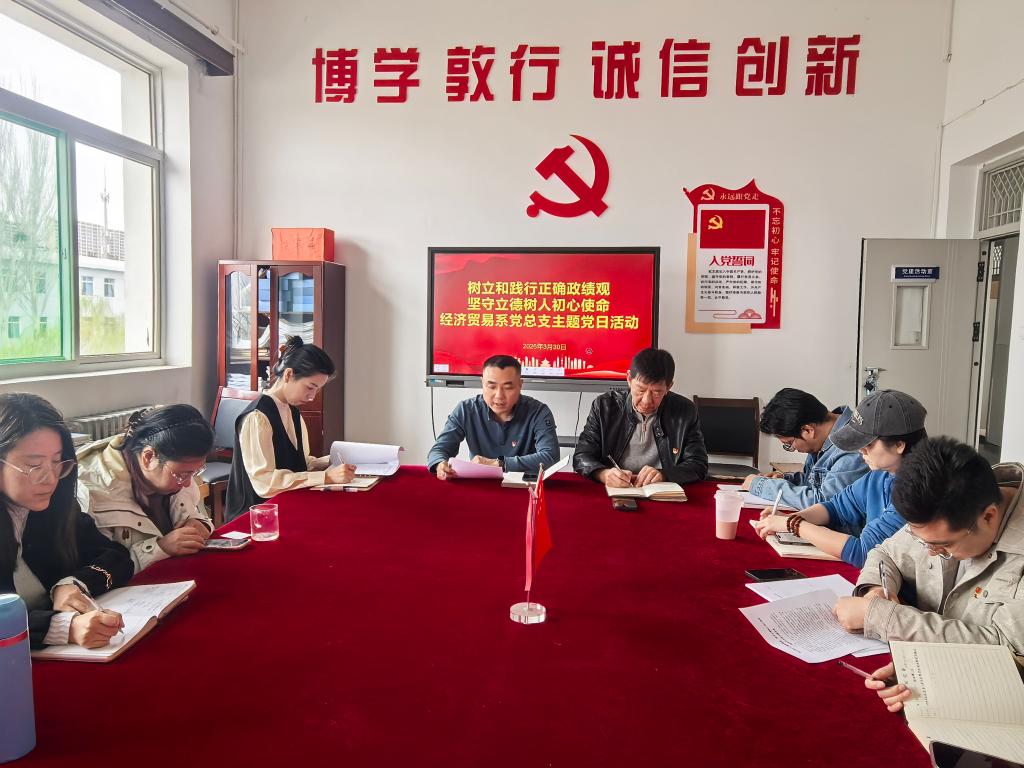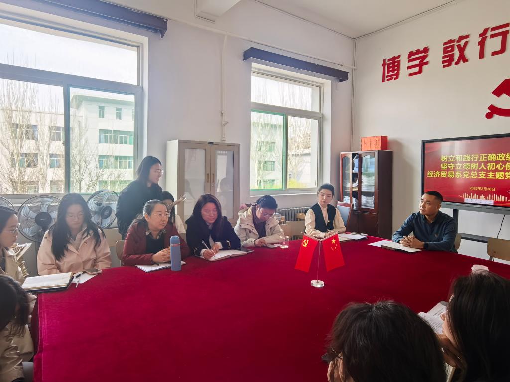 为深入学习贯彻习近平总书记关于树立和践行正确政绩观的重要论述,引导广大党员师生深刻把握其科学内涵与实践要求,2026年3月30日下午,经济贸易系党总支在党建活动室开展了“树立和践行正确政绩观 坚守立德树人初心使命”主题党日活动。全体党员与学生代表参加,活动由党总支副书记杨晓溪主持。