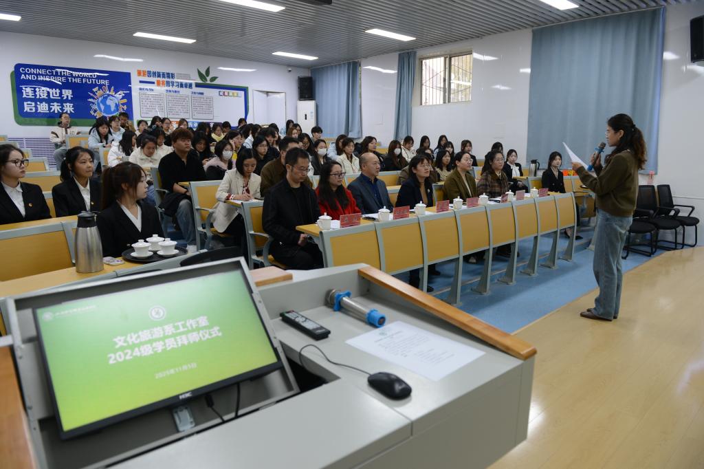2025年11月5日,文化旅游系举行“工作室2024级学员拜师仪式”。文化旅游系党总支书记马娟、系主任王雪娟,企业导师李瑛、李文燕、宋杰应邀出席,文化旅游系专兼职教师及工作室学员参加了此次活动。