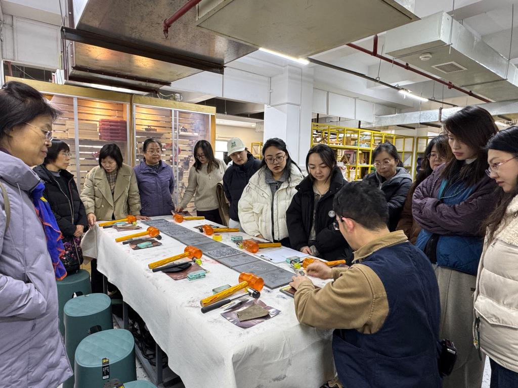 为学习美育实训基地建设经验,推进学院美育教学基地的规划与发展,提升教师美育素养,启发公共基础学科与美育的融合创新,2025年11月17日和11月19日,学院公共基础教学部组织全体教师分批赴山西大学国家大学科技园黄河民艺馆,开展非遗文化参观学习。