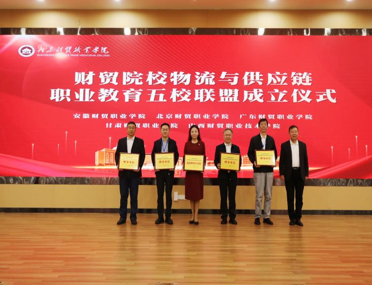 开幕式上,任豪祥会长为安徽财贸职业学院、北京财贸职业学院、广东财贸职业学院、甘肃财贸职业学院、山西财贸职业技术学院授牌,标志着财贸院校物流与供应链职业教育“五校联盟”正式成立。五校将在专业建设、课程开发、师资交流、学生培养等方面开展深度合作,实现资源共享、优势互补。