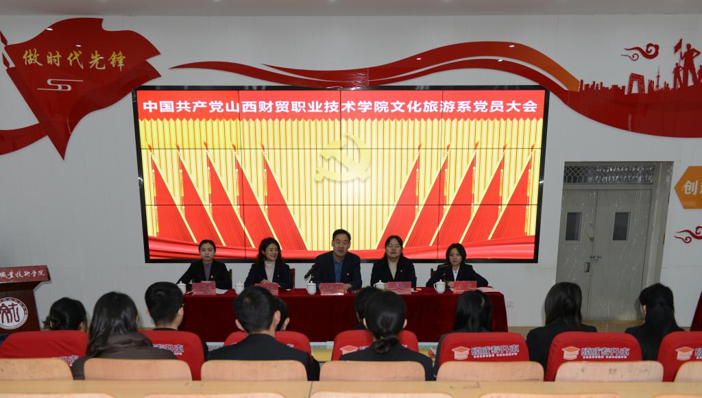 为进一步提升基层党组织的组织力、凝聚力、战斗力,依据《中国共产党章程》《中国共产党基层组织选举工作条例》《中国共产党普通高校基层组织工作条例》相关规定,经报学院党委批准,2026年1月15日上午,文化旅游系党总支于西阶梯教室召开换届选举党员大会。学院党委副书记张合义到会指导,系党总支全体党员参会,会议由李佳同志主持。