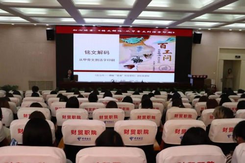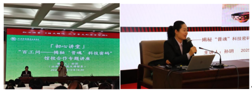 10月15日,文化旅游系与山西博物院依托“初心讲堂”平台,通过“第二课堂”形式,在我院举办以“百工问——揭秘‘晋魂’科技密码”为主题的专题讲座。山西博物院文博馆员孙玥老师担任主讲,以“铭文解码——从甲骨文到活字印刷”为脉络,通过图文并茂的展示和深入浅出的讲解,为同学们揭开了山西历史文化遗产中蕴含的科技智慧。此次讲座由文化旅游系老师闫亚婷主持,共250名学生参加。