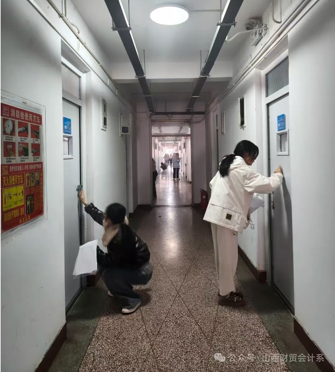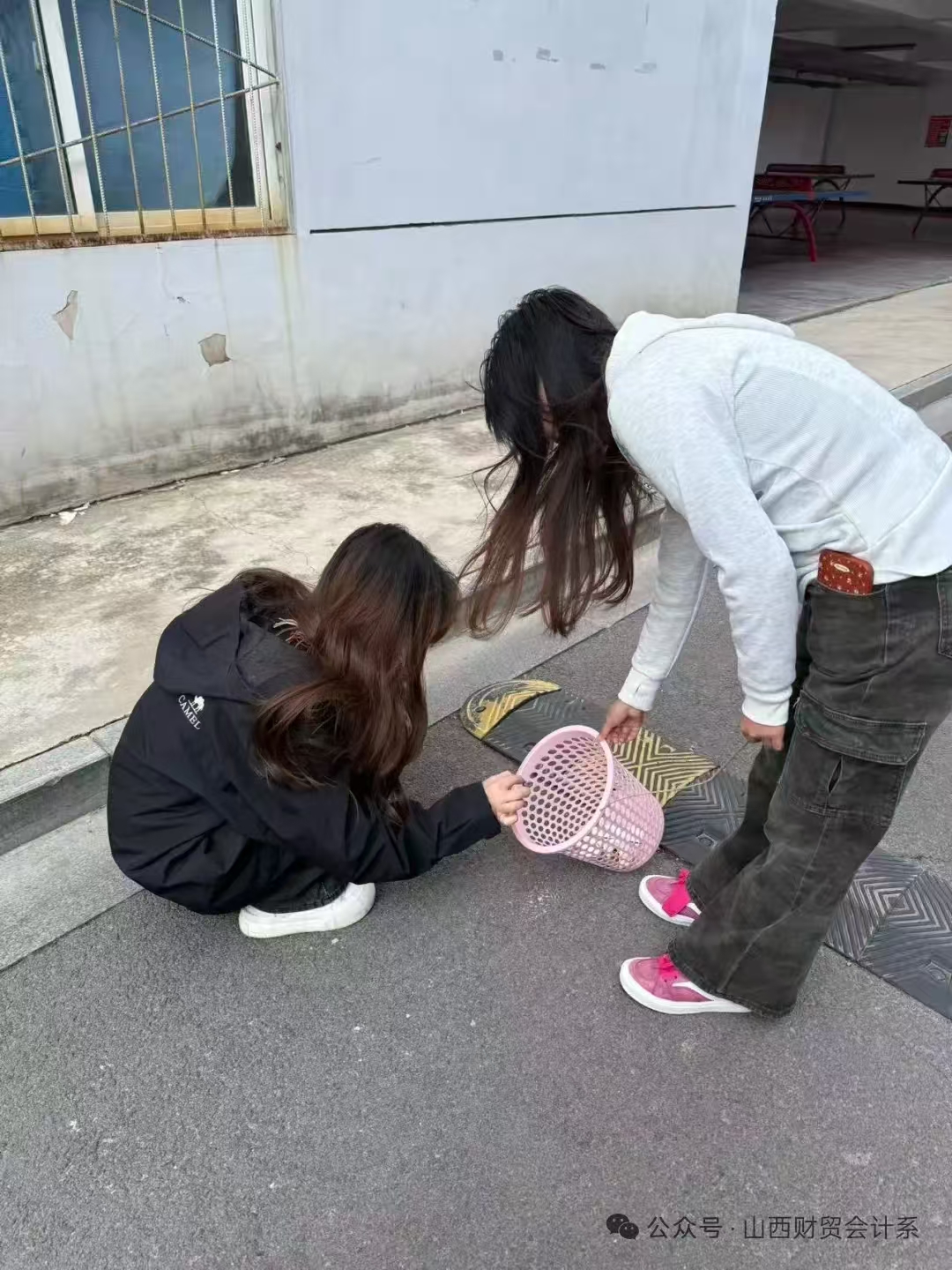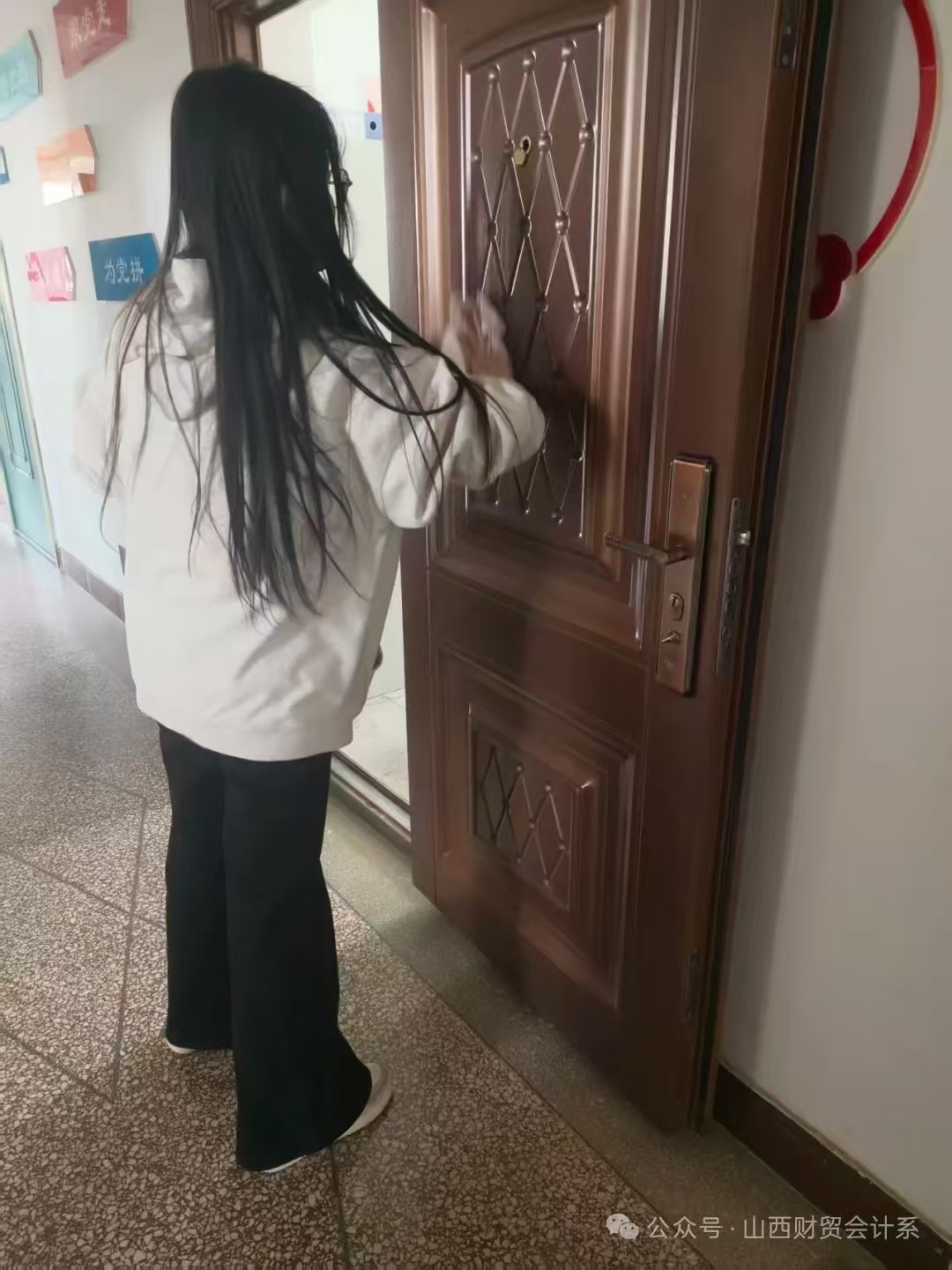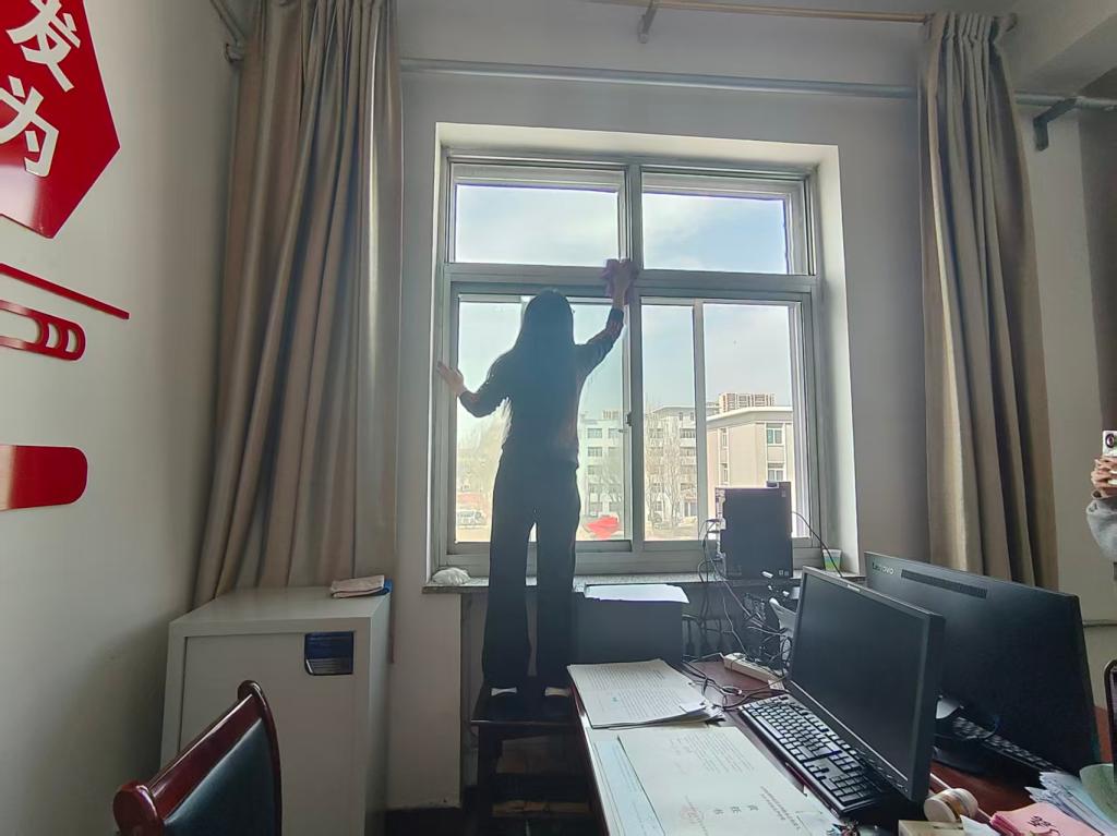 我系学子们主动参与擦门清洁活动,维护校园整洁面貌,全方位清除死角污垢,守护校园公共区域卫生。