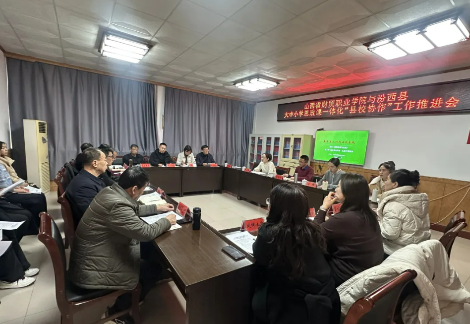 为进一步贯彻落实山西省教育厅《关于建立大中小学思政课一体化“县校协作”机制的通知》文件精神,着力推动各学段思政课的系统性衔接、整体性贯通与深层次融合,12月10日,山西财贸职业技术学院思政部主任滑登红带队一行5人赴汾西县教育体育局,召开大中小学思政课一体化“县校协作”工作推进会。会议由汾西县教育体育局党组书记、局长郭瑞华主持,各学段学校负责人及思政课教师代表共21人参加会议。