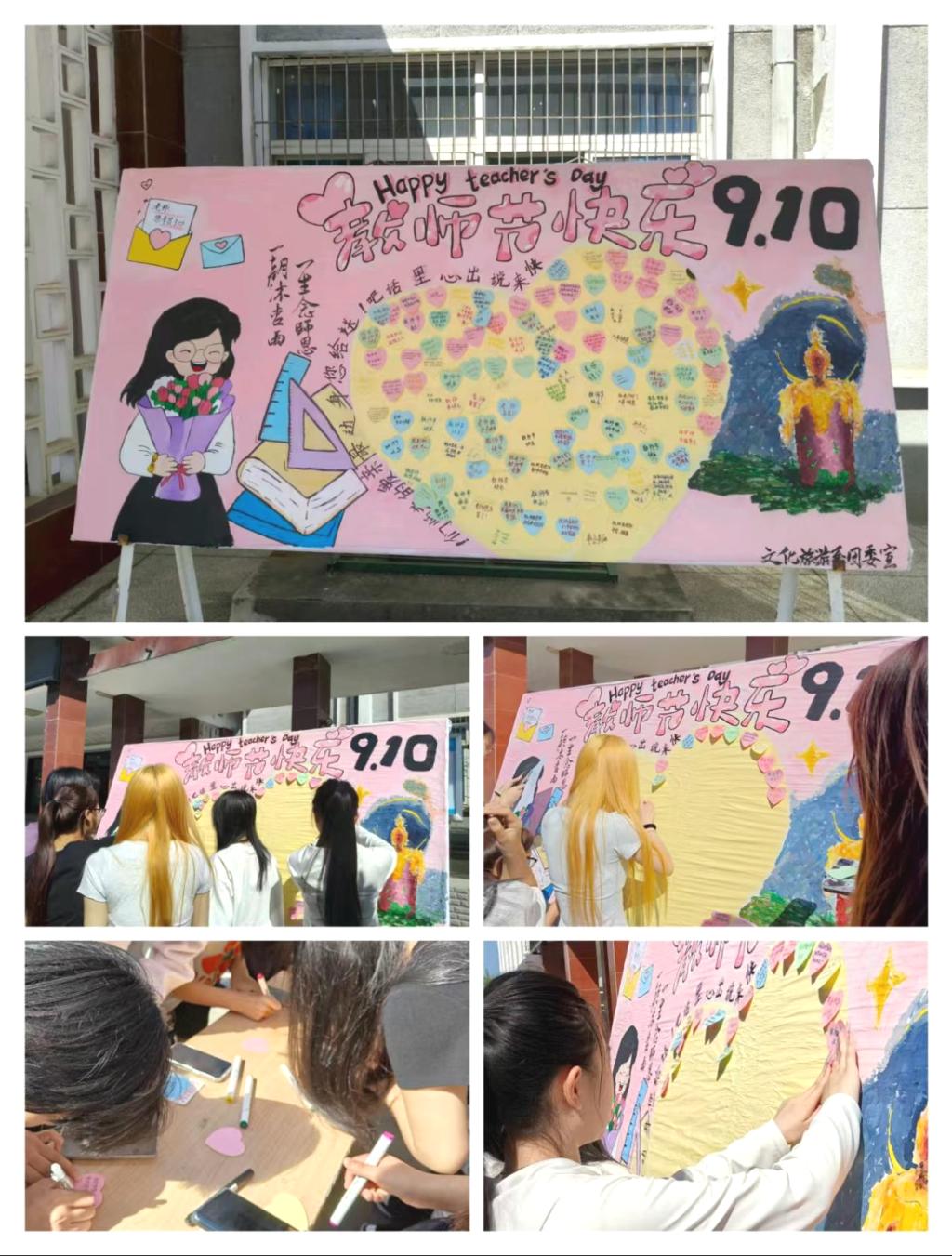 在第41个教师节到来之际,文化旅游系以“师恩如海 青春同行”为主题,策划开展系列特色活动,向我系全体教师送上节日祝福,营造浓厚尊师氛围。