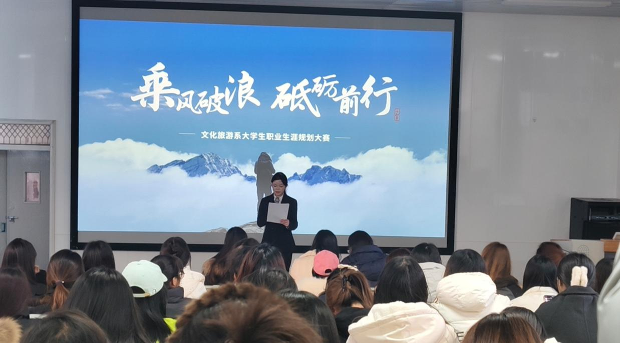为帮助文化旅游系学子提前锚定职业方向、提升生涯规划能力。 11月24日,文化旅游系大学生职业规划大赛在东阶梯教室顺利举办。本次赛事设初赛和复赛两个环节,复赛特邀文化旅游系党总支书记马娟老师、院团委负责人李慧老师、学生处姚溪溪老师担任评委。