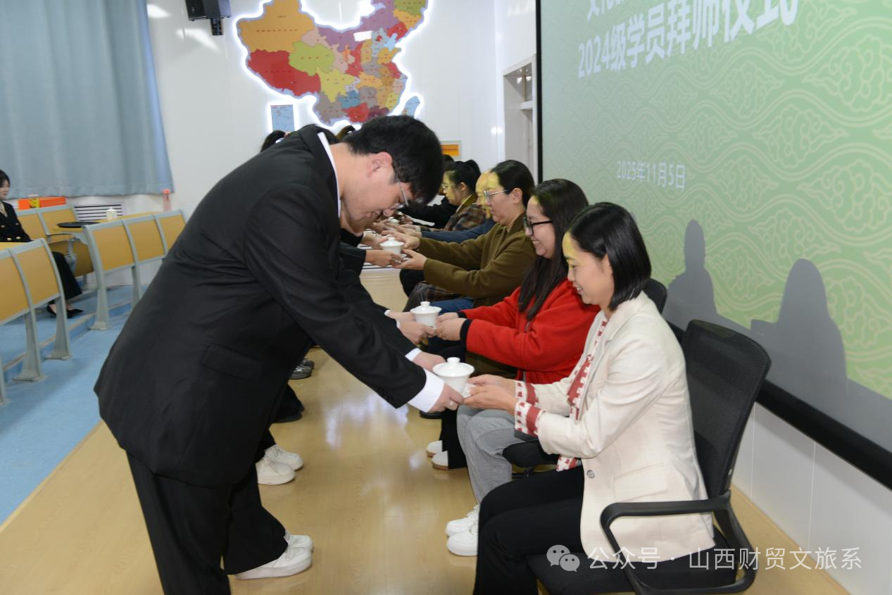2025年11月5日,文化旅游系举行“工作室2024级学员拜师仪式”。文化旅游系党总支书记马娟、系主任王雪娟,企业导师李瑛、李文燕、宋杰应邀出席,文化旅游系专兼职教师及工作室学员参加了此次活动。