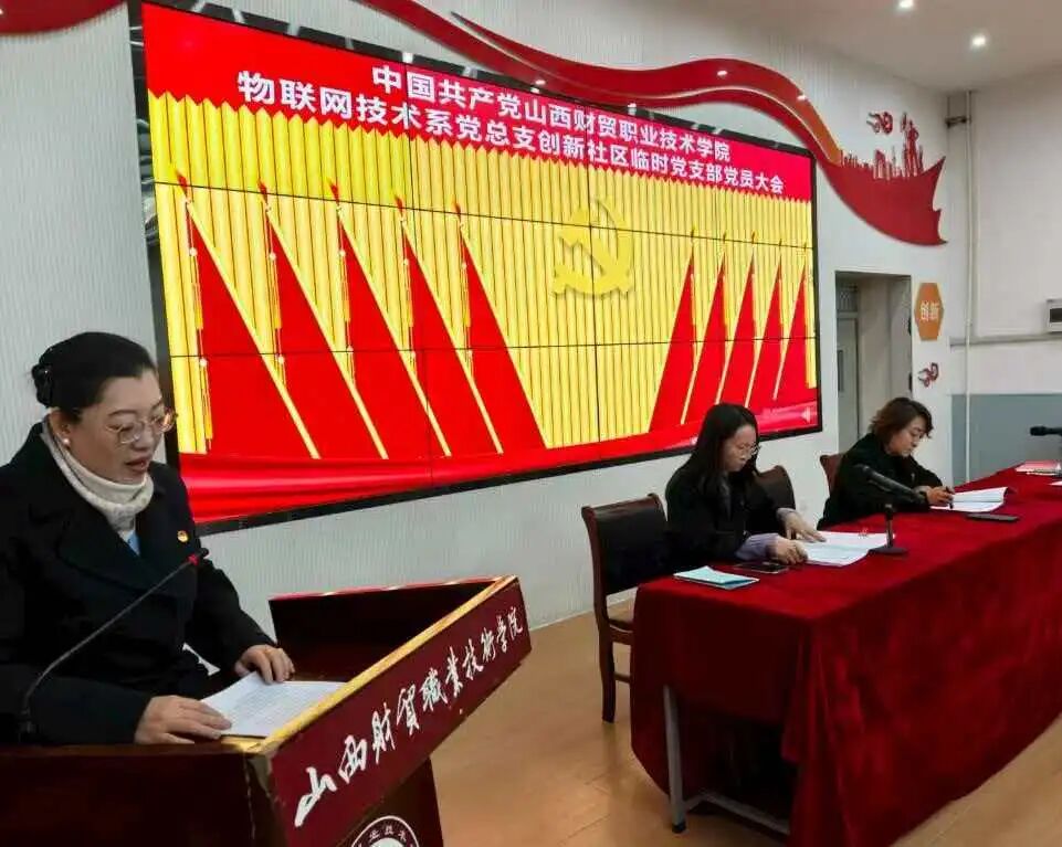 根据《中国共产党章程》《中国共产党基层组织选举工作条例》和《中国共产党普通高等学校基层组织工作条例》等相关规定,经报请物联网技术系党总支批准,物联网技术系创新社区临时党支部于1月14日在西阶梯教室召开党员大会,圆满完成换届选举工作。会议由刘圆圆同志主持,全体党员参加。
