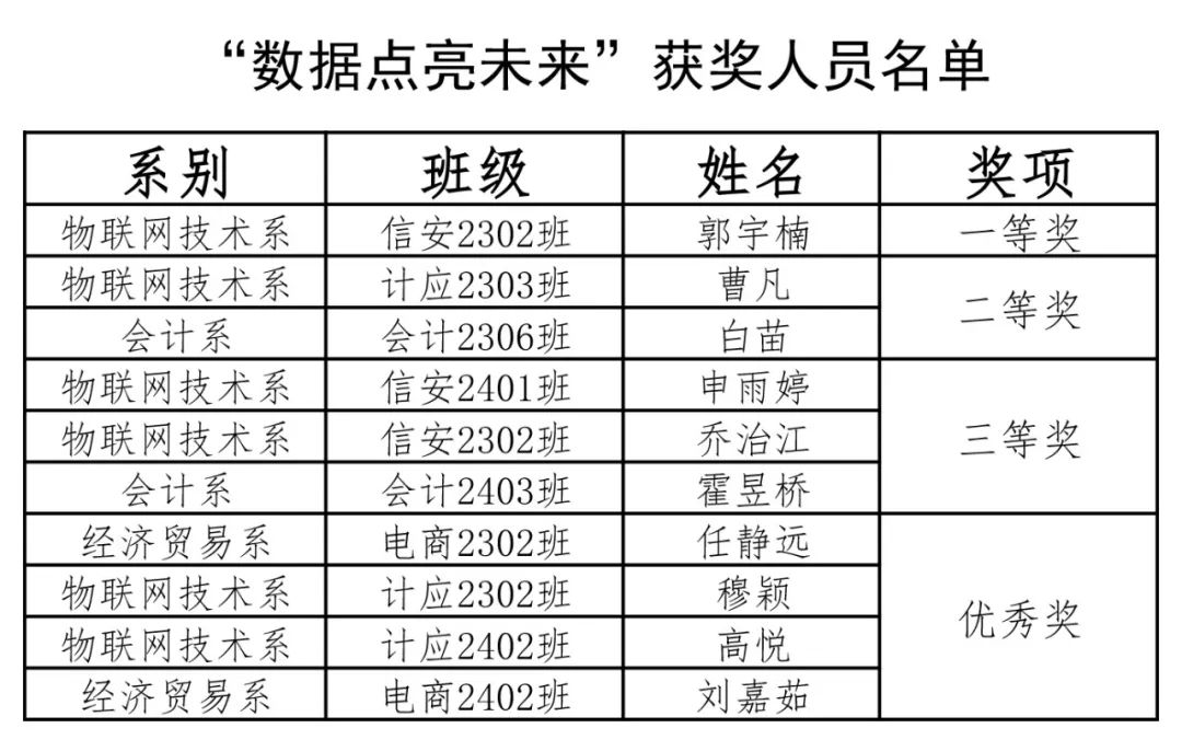 通过此次大赛,同学们不仅强化了Excel操作技能,还培养了数据思维和解决实际问题的能力。今后,物联网技术系将继续总结经验,举办更多高质量的数据处理相关活动,助力同学们在数据领域不断深耕、持续进步。期待下一次大赛能有更多同学参与,共同在数据的海洋中探索未知,点亮未来!