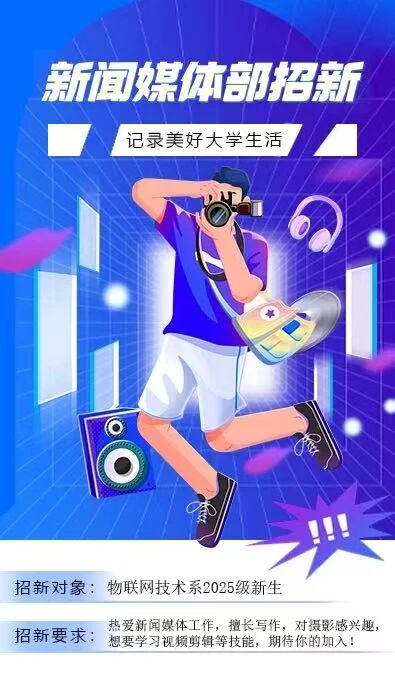 欢迎新同学加入新闻媒体部,让我们一起用影像与文字为笔,共同描绘物联网技术系的绚丽未来!