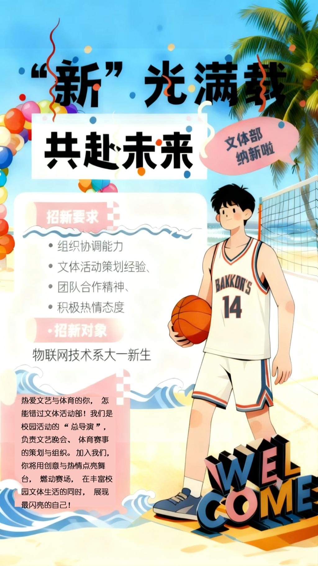 欢迎各位新同学加入!让我们携手打造精彩活动,共同书写校园文体生活的新篇章!