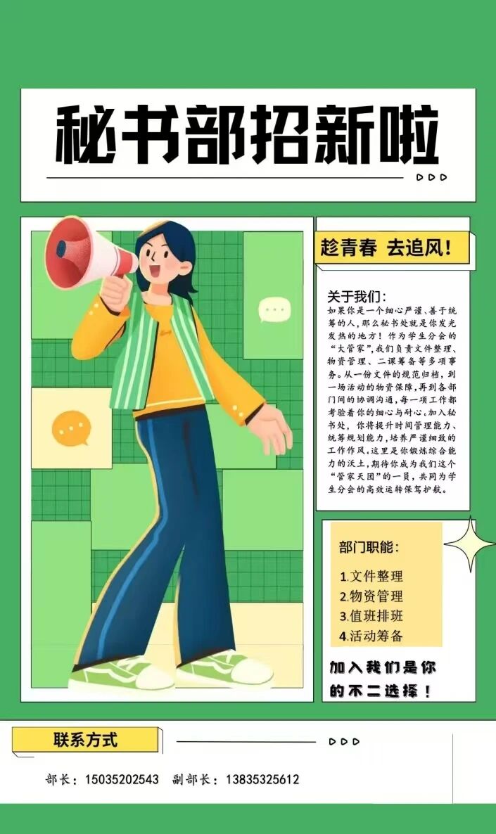 加入我们吧!在这里,你能不断突破自我、展现个人风采,让校园生活既充实又富有意义!