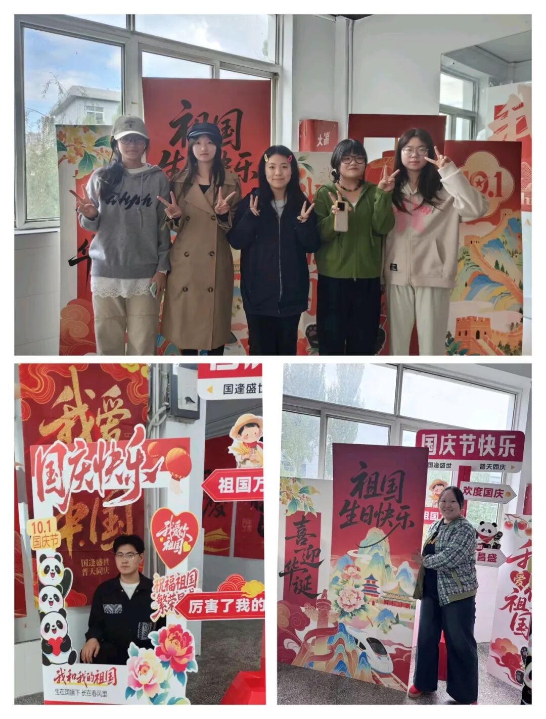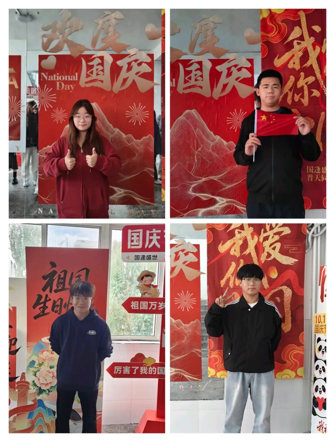 这些作品生动展现了“中国红”承载的百年历史厚重感,更彰显出其在新时代背景下的鲜活活力;照片中“我爱你中国”的醒目标语、“欢度国庆”的喜庆装饰等元素,更成为学子们表达对祖国热爱之情的直接载体,让红色情感在镜头下得以具象化呈现。这些珍贵瞬间以青年群体特有的敏锐视角与独特审美,将专业的镜头审美与真挚的民族情感深度融合,打破了红色文化传播的传统模式,为校园红色文化氛围的营造注入了全新的鲜活气息。