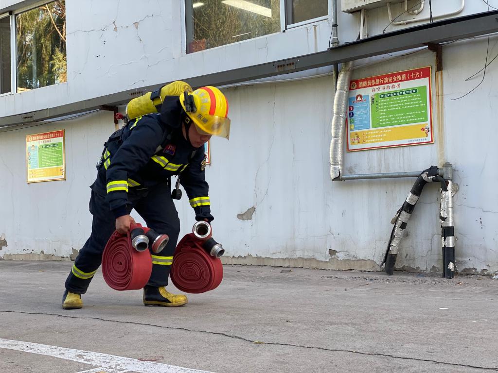 下午,实践队员们在消防救援人员的指导下在穿战斗服百米负重跑、单干线出两只水枪等项目后,“消防体验官”们一个个都喘上了粗气,一套消防战斗服加装备,消防队员穿戴只用三十秒,而实践队员则花了两分多钟才勉强完成。常用的支线水带长20米、重6.5公斤,消防救援人员经过长期训练,已经完全掌握定向散开、指哪儿打哪儿的控制力,而实践队员们则筋疲力竭后完成操作。“训练很苦,但我很开心,能单干线出水枪啦!”实践队员王晓涵的笑容在艳阳下格外灿烂,“实操的时候穿着全套的消防装备,背上空气呼吸器,整套装备将近47公斤,再加上腰上的工具包,每个人身上都有近百斤的重量。很热,很累,但只有这样才能最真实模拟救火时的负重。毕竟,火灾是不会等我们、迁就我们的。”实践队员张尧卸下一身装备后说到。