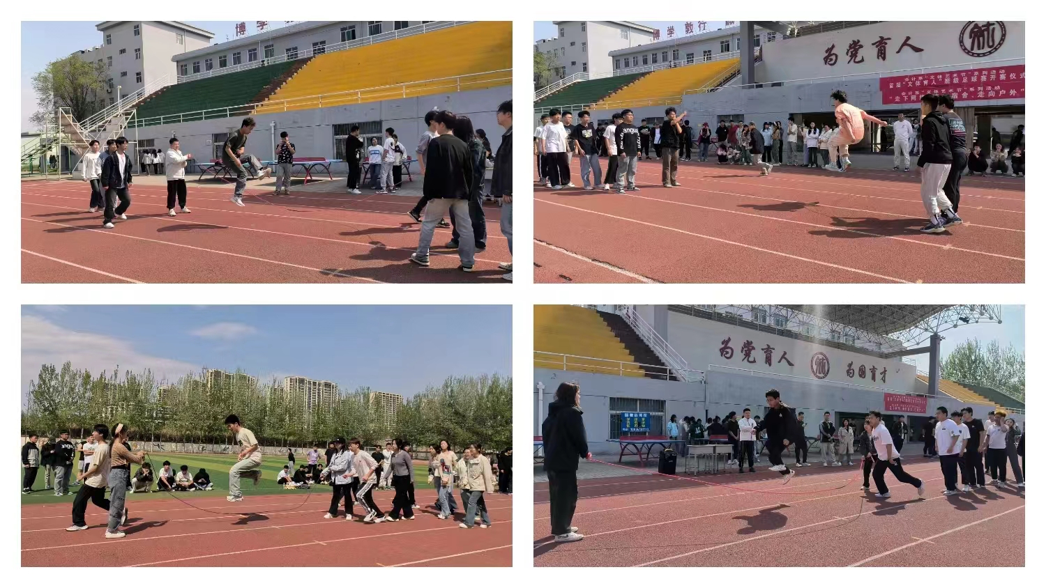 为了进一步丰富校园文化生活,培养学生良好的意志品质及团结协作精神,同时展现大学生朝气蓬勃,积极向上的青春风采,促进学生全面发展。物联网技术系于2024年4月10日下午在大操场开展“阳光运动,绳彩飞扬”跳长绳比赛。本次活动本着“友谊第一,比赛第二”的原则,让同学们走出教室,点燃运动激情,焕发青春光彩。