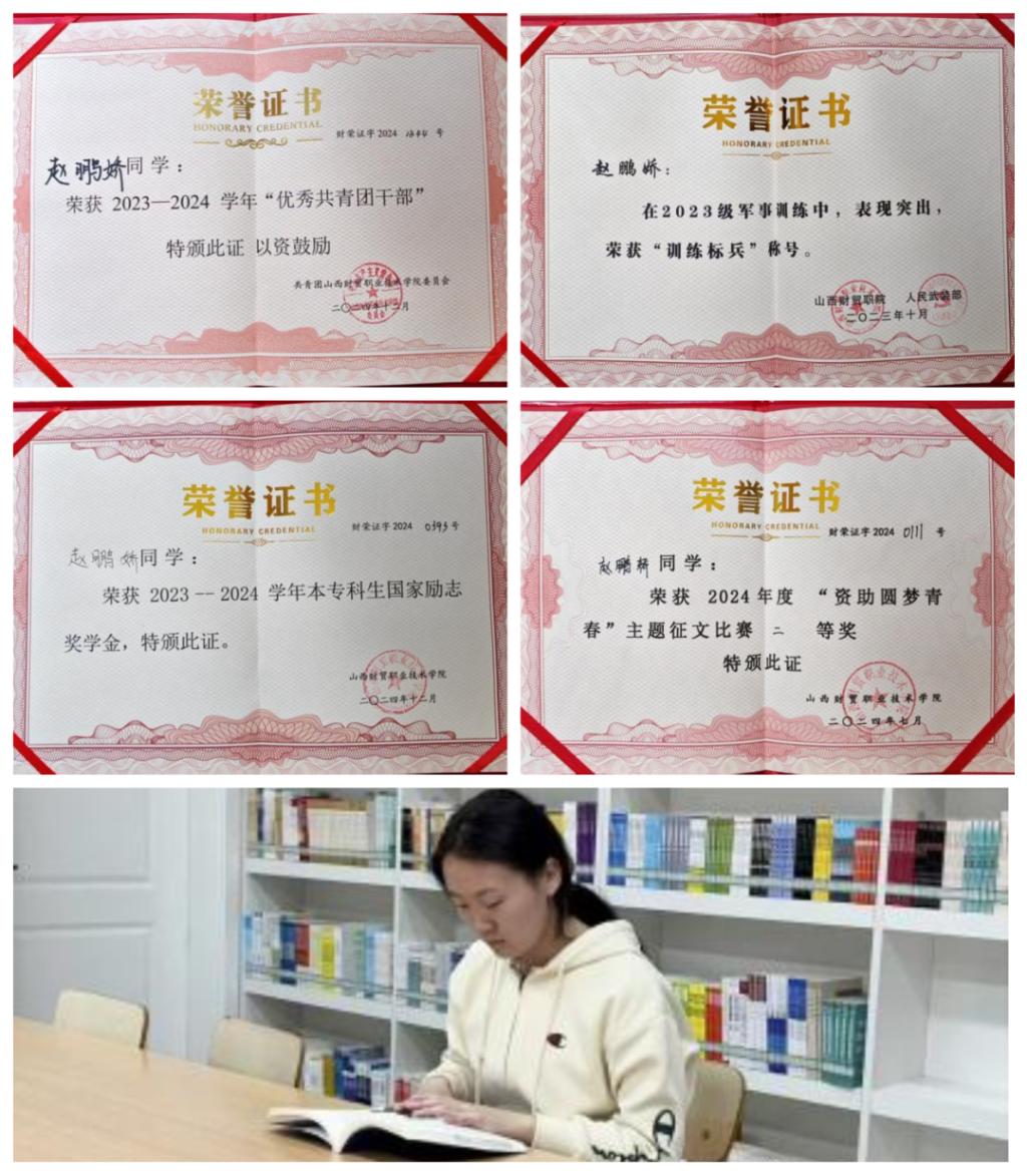 师长点评:辅导员老师对赵鹏娇同学的事迹给予了高度评价:“该生常以理性包容之心引导同学,面对困难,自强是她的有力武器。身为团支书,班级工作尽心尽责,组织活动精彩;她以切实之举展现非凡品质,相信未来,她定能凭借坚毅与才华,书写更为壮丽的人生篇章。”