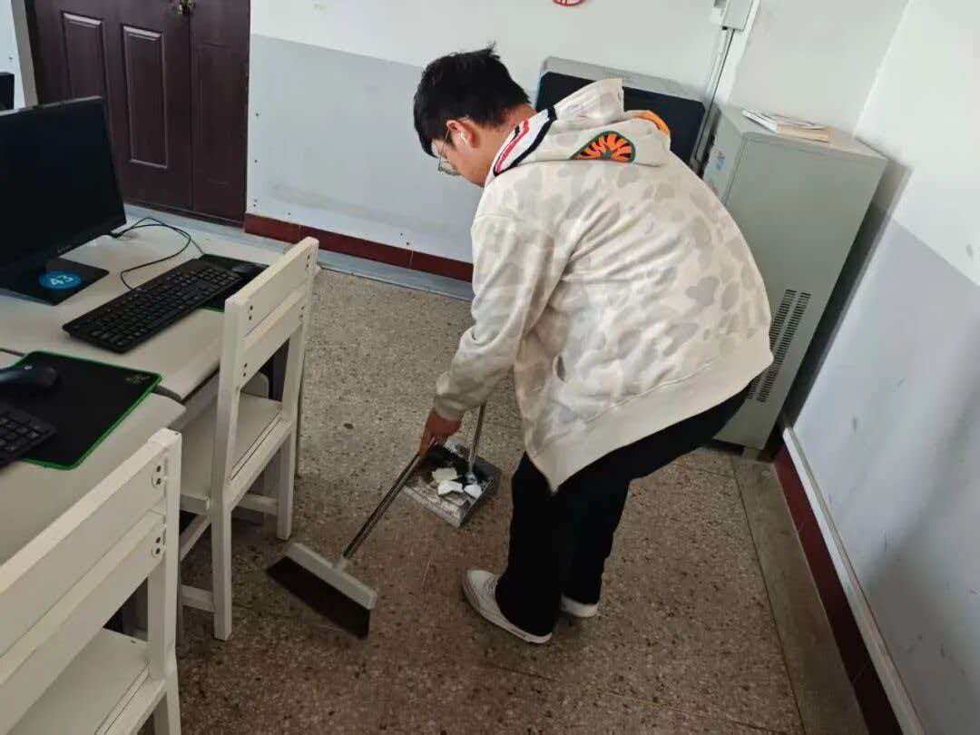 经过数小时努力,机房地面光洁、设备有序,学习科研环境焕然一新。同学们深刻领悟了“一屋不扫,何以扫天下”的内涵,体会到维护公共环境是责任心与集体热爱的体现,实践能力、团队精神得到锻炼,劳动精神悄然扎根。