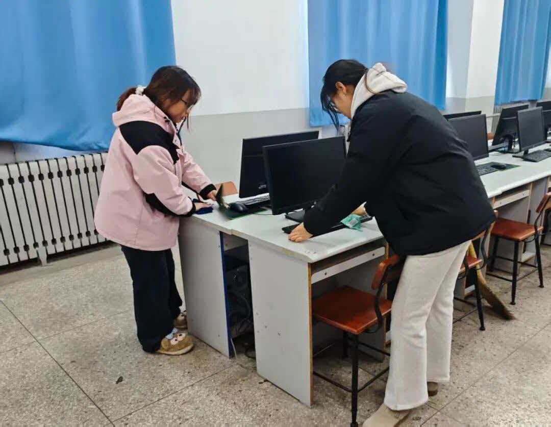 活动开始后,同学们迅速分组,投入到机房的各个角落。一部分细致地打理地面每一处缝隙,确保室内一尘不染。另一部分同学专注于设备本身的维护,他们俯身擦拭显示器、主机外壳,小心整理每一根线缆,确保设备清洁、线路规整,对键盘、鼠标等高频接触部件进行清洁,为日常学习筑起一道卫生屏障。整个过程中,大家默契配合,从地面到桌面,从设备外部到接口内部,不放过任何一个细节,将维护工作落到实处。