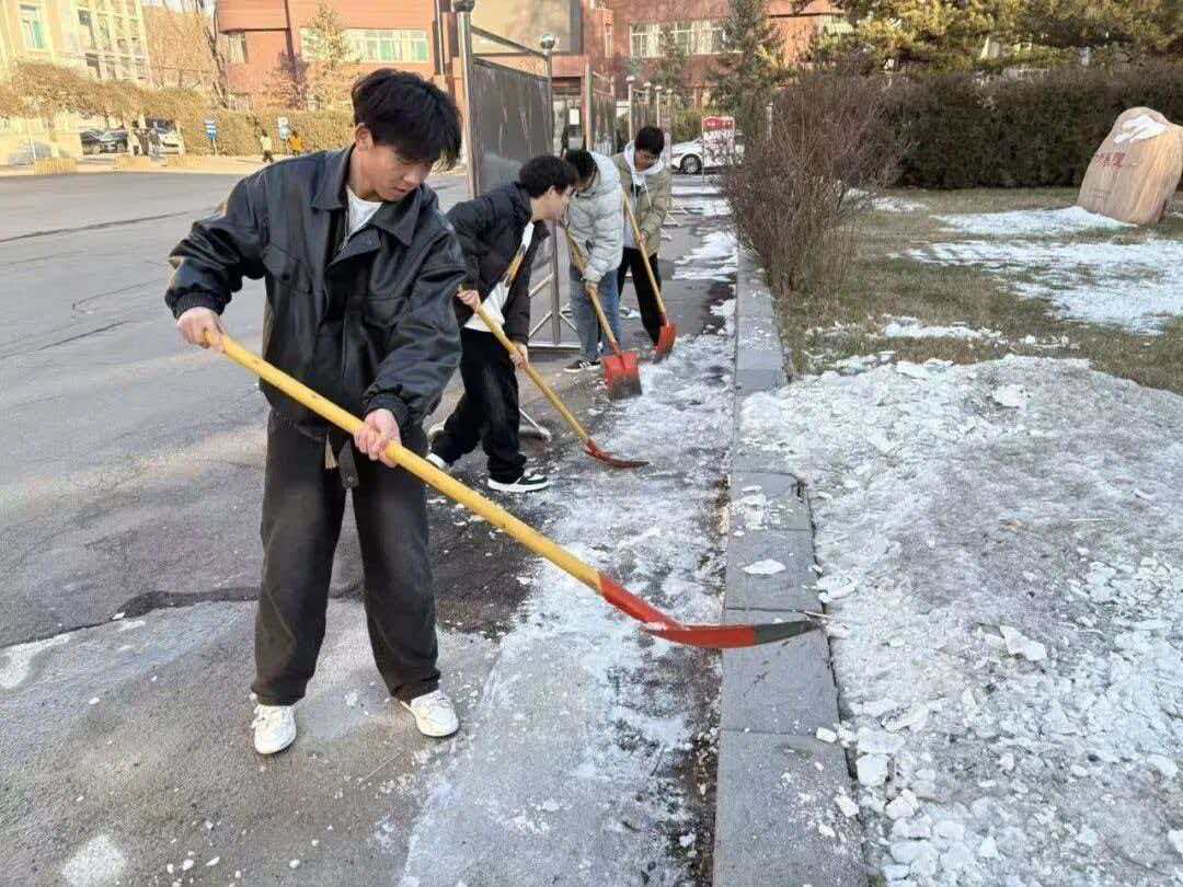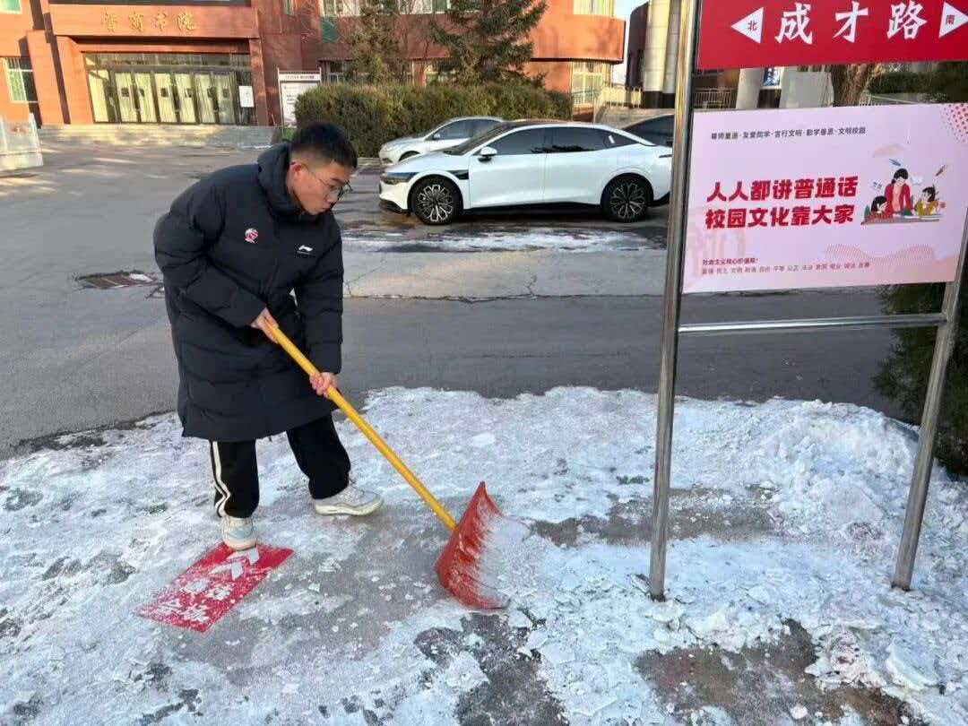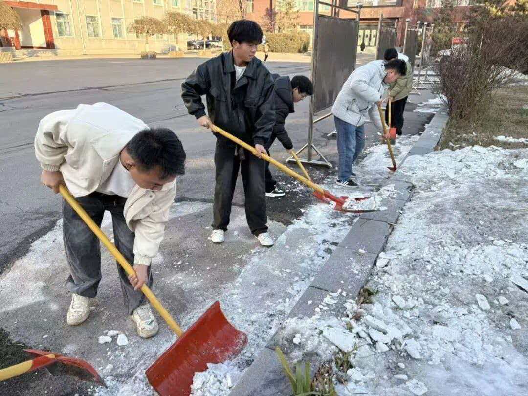 德智体美劳,五育并举。初雪落校园,温情满财贸。一场降雪为山西财贸职业技术学院披上银装,却也给师生出行安全带来隐患。为保障校园道路畅通,传递青春正能量,我系学子迅速响应,以雪为令、闻雪而动,投身校园扫雪志愿服务,用实际行动书写新时代大学生的责任与担当。