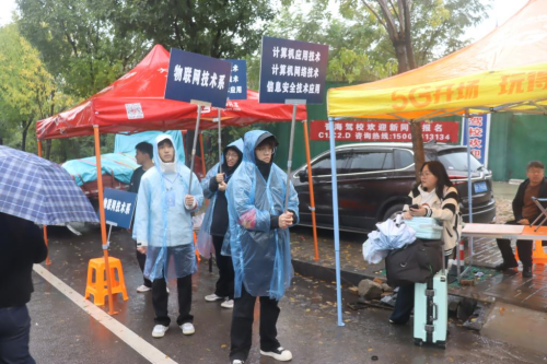 志愿护航,青春力量传递温暖。身着雨衣的志愿者穿梭在校园的每个角落,有的冒雨搬运行李,有的耐心指引答疑,有的协助办理一卡通、领取校服……他们用热情的笑容和周到的服务,让新生在秋雨中感受到财贸大家庭的温暖,也赢得了新生家长的频频点赞。