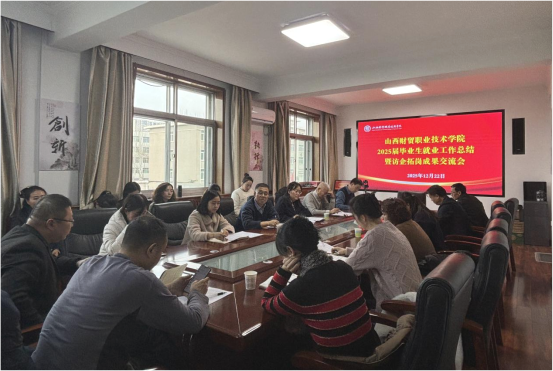为全面总结2025届毕业生就业工作成效,深化访企拓岗促就业专项行动成果,进一步推动就业工作提质增效,12月22日下午,山西财贸职业技术学院2025届毕业生就业工作总结暨访企拓岗成果交流会在勤政楼三层会议室顺利召开。学院领导班子成员,学生处、院团委、教务处等职能部门负责人,各系党总支书记、主任、党总支副书记及访企拓岗教师代表齐聚一堂,共商就业工作发展大计。会议由学生处处长冯春主持。