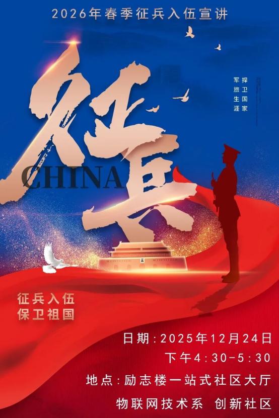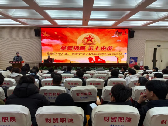 为深入学习贯彻国家征兵政策,激发青年学子“携笔从戎、建功军营”的报国热情,12月24日下午4:30,物联网技术系、创新社区2026年春季征兵入伍宣讲会在大报告厅隆重举行。本次活动由物联网技术系党总支副书记、创新社区副主任罗燕老师进行宣讲,院学生处负责征兵入伍工作刘鹏老师及创新社区会计系专职辅导员王浩老师参会,面向创新社区全体怀揣军旅梦想的学子,采用“线上+线下”同步模式,现场气氛热烈,互动踊跃,取得了良好的动员与教育效果。