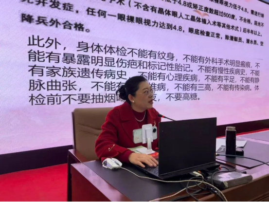 宣讲会上,罗燕老师围绕大学生最为关切征兵入伍的议题,进行了系统解读。内容涵盖入伍条件、国家资助办法、网上报名流程、学籍保留与复学等。讲解详细梳理了从“全国征兵网”报名,到学费补偿代偿,再到退役后升学优惠的全流程,为同学们扫清了政策盲点,提供了清晰的行动指南。