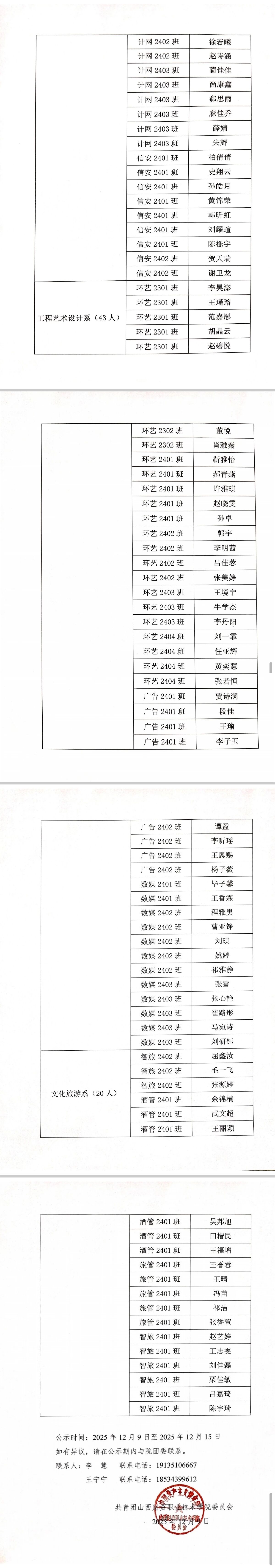 关于山西财贸职业技术学院2025下半年入团发展对象的公示