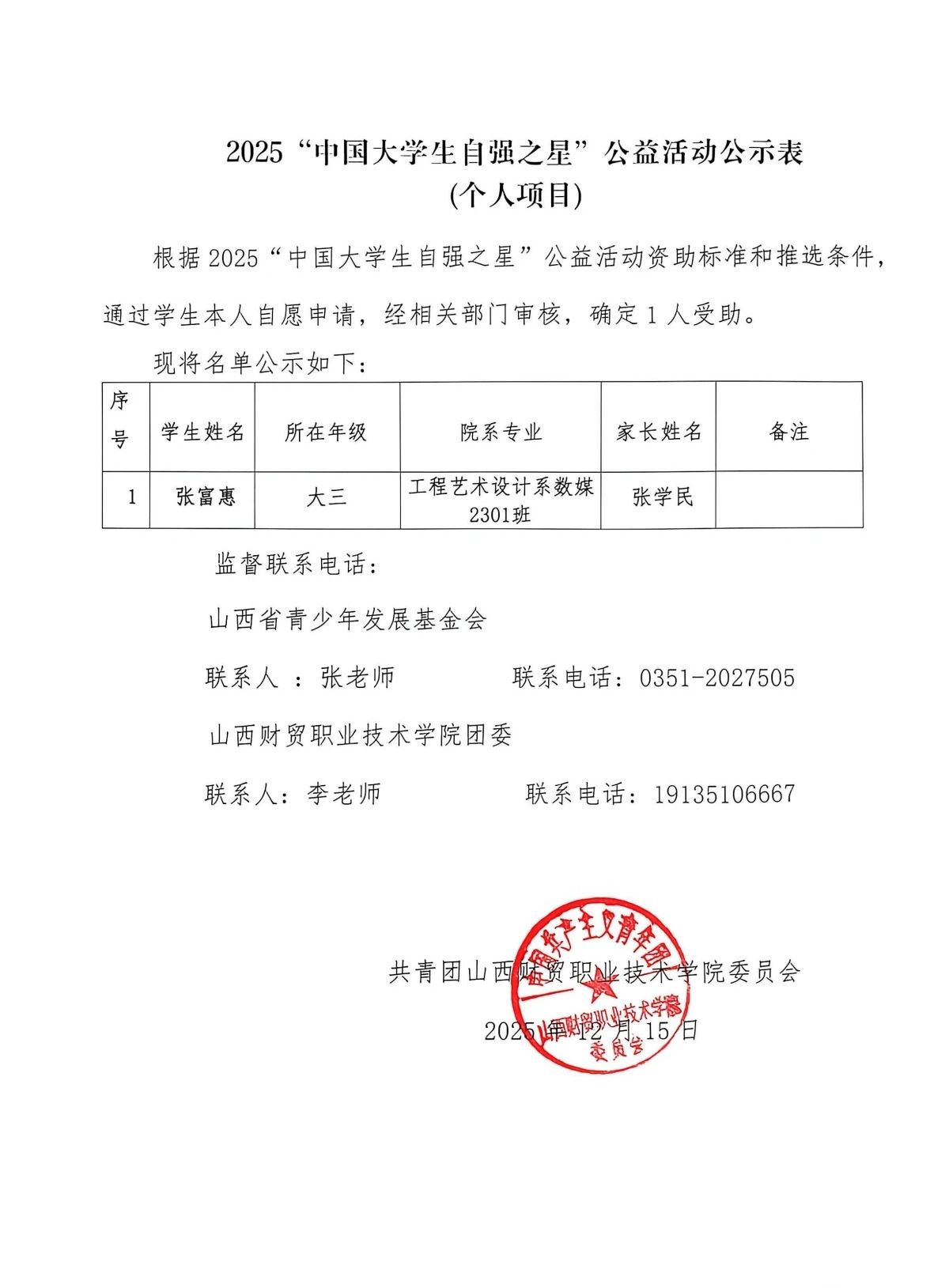 2025年“中国大学自强之星”公益活动公示表(个人项目)